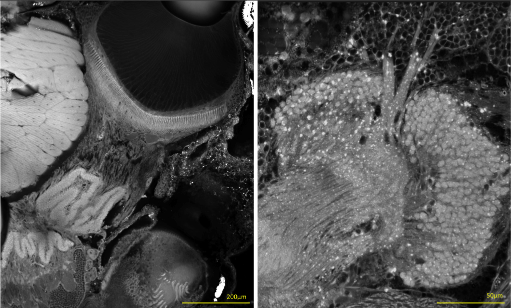 I intend to later investigate how moveable retinas and the division of labor between principal and secondary eyes evolved across the order Araneae. To accomplish this, I will use phylogenetic comparative methods with ecological and lifestyle traits, quantitative behavioral assays and pose estimation (with DeepLabCut, a tremendously useful open-source tool), electrophysiology, ophthalmoscopic techniques, 3D printed tools, and confocal microscopy. Furthermore, I have successfully tailored fluorescence-based histological protocols (e.g., dextran injections for neural-tract tracing and immunohistochemistry using a broad panel of neural markers) used in other invertebrates.