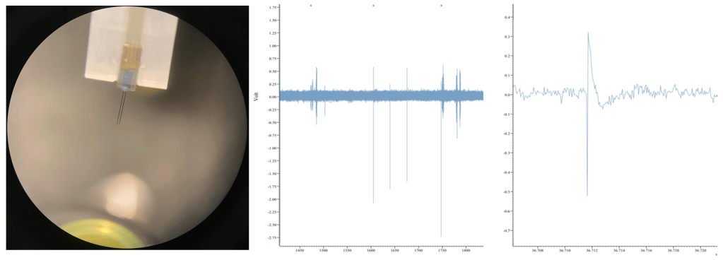 Currently, I am simultaneously recording eye movements (using a custom-built eye tracker; Fig. 3) and neural activity of various lower- and higher-order brain centers (using in vivo extracellular electrophysiology; Fig. 4) as well as high-pressure liquid chromatography in jumping spiders (Phidippus audax) as they respond to different types of stimuli and transition between behavioral states (Fig. 5). I am particularly interested in how these animals recognize and search for objects, and how their strategies and computations compare to humans and other animals. This work is in collaboration with Luke Remage-Healey at UMass Amherst and Ron Hoy at Cornell, and has received funding from the American Arachnological and Animal Behavior Societies.